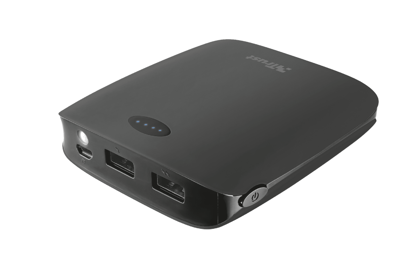 - Trust Leon Powerbank 10400 mAh modelleri, 1 A ve 2.1 A çıkışlı 2 adet USB port sayesinde aynı anda iki adet cihazı şarj edebilmenize olanak sağlıyor.